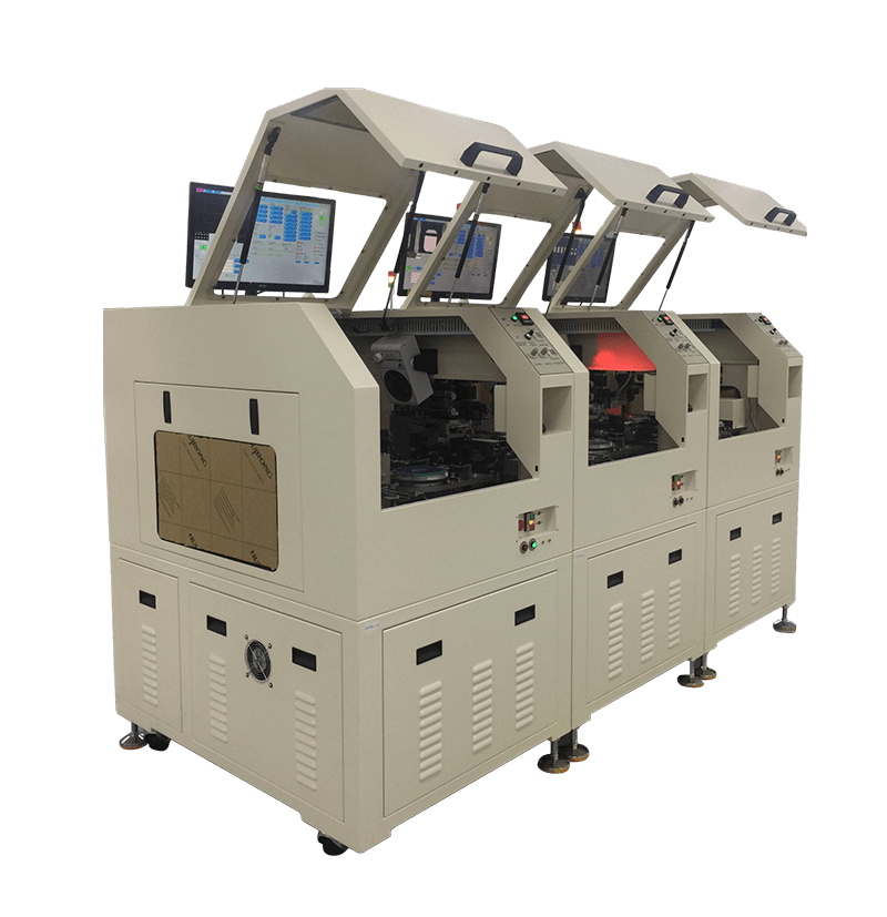 DB888自動固晶機,三連機具有三焊頭九晶環(huán),且每個焊頭可獨立作業(yè),每個單機有三個晶環(huán)(可同時放RGB三種晶片),具有卓越的生產性能